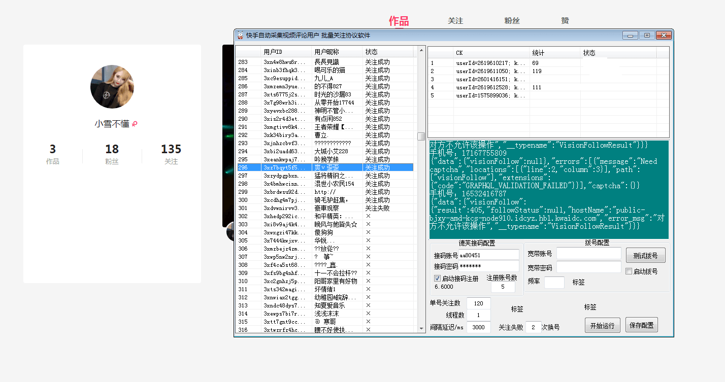 2、快手批量关注协议软件